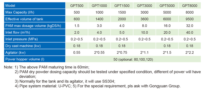 GPT type automatic chemical dosing system is mainly used for preparing and adding PAM agent continuously. It is an important part of sludge dewatering system.